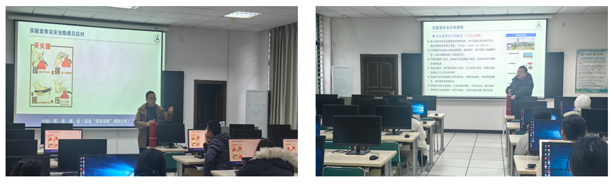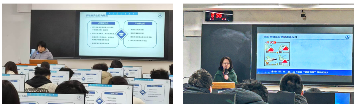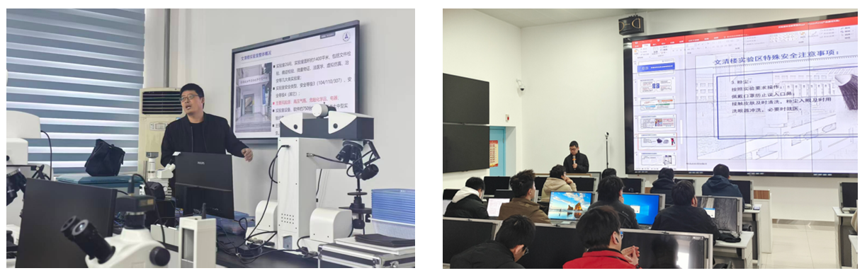同时,为深入贯彻落实高校实验室安全管理相关决策部署,新学期伊始,实验教学管理中心统筹安排四大实验片区同步开展实验室安全教育活动。各实验员以开学第一课为契机,开展实验室安全专题宣讲,围绕用电安全、消防安全、实验设备规范操作、应急逃生方法等核心要点进行细致讲解与重点强调,切实强化学生实验室安全意识,层层压实实验室安全管理责任。